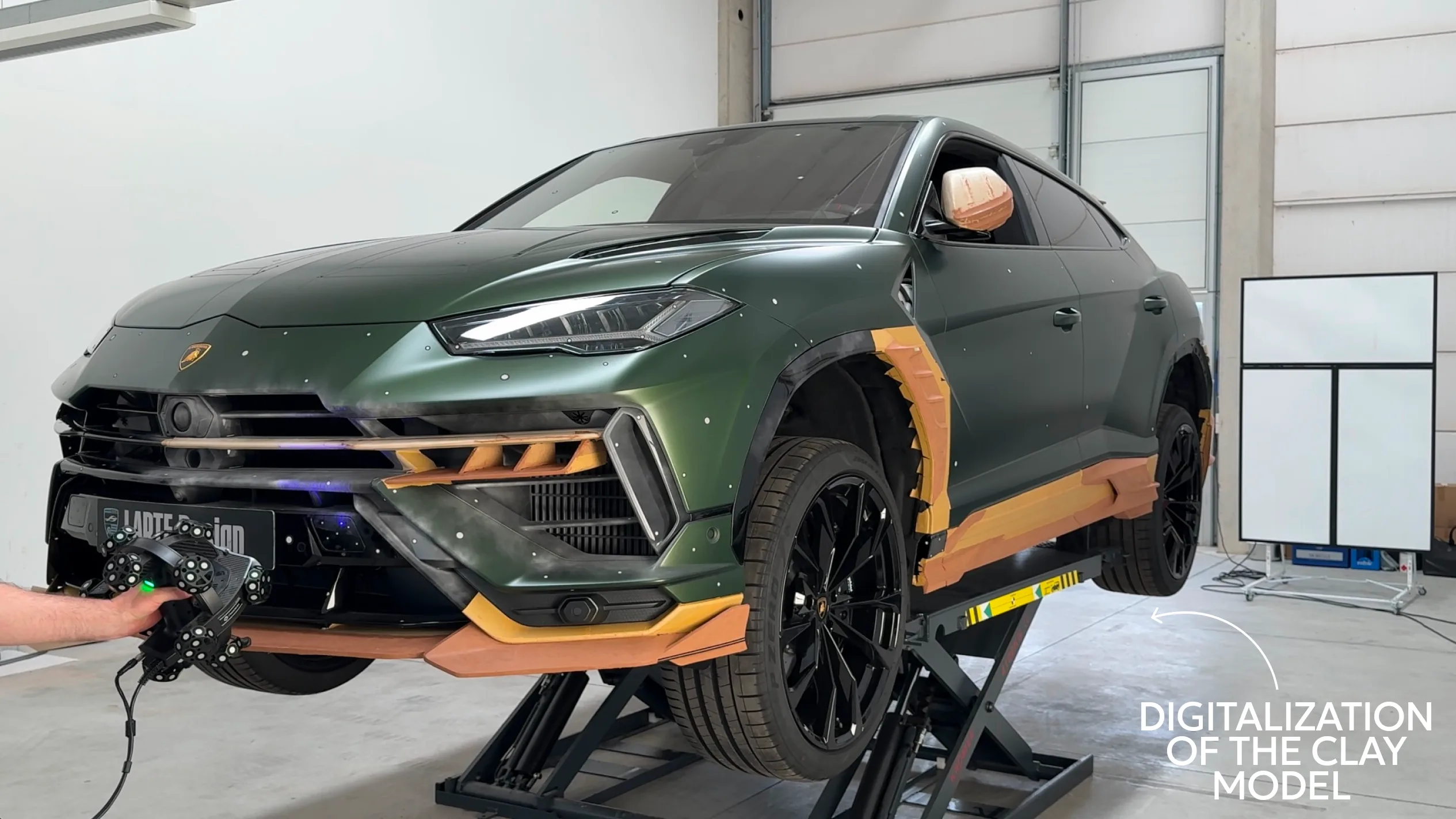 The development of LARGENDA for Lamborghini Urus Performante began with full-scale clay modeling directly on the physical vehicle.