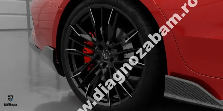 Detalii premium – oglinzi din carbon, jante forjate și stopuri tip cristal.
