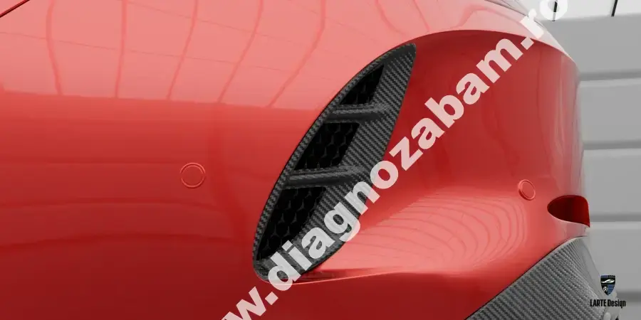 Capotă sculptată – disponibilă în carbon pre-preg sau vopsită lucios, accentuează agresivitatea frontală.