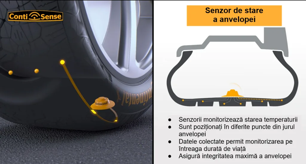 Un exemplu concret este tehnologia ContiSense™ dezvoltată de Continental. Aceasta folosește senzori integrați într-un strat de cauciuc conductiv, care măsoară: